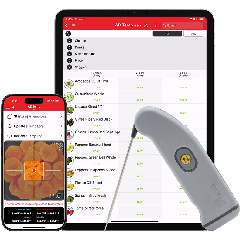 Cooper Atkins Blue2, Cooper Atkins Multi-Function Thermometer (20200), ThermoWorks Thermapen Blue, ThermoWorks Thermapen One Blue, ThermoWorks ThermaQ® Blue High Temp Kit, ThermoWorks RayTemp Blue, ThermoWorks TempTest Blue, ThermoWorks TempTest 2 Blue, ETI BlueTherm One LE Thermometer